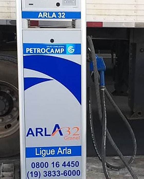 ARLA 32 ou A.R.L.A. (Agente Redutor Liquido de Óxido de Nitrogênio Automotivo) é um reagente composto por 32,5% de ureia de alta pureza em água desmineralizada, não inflamável e não tóxico, com aparência totalmente transparente. É utilizado juntamente com o sistema de Redução Catalítica Seletiva (SCR) para reduzir quimicamente a emissão de óxido de nitrogênio nos gases de escape dos veículos movidos a diesel (“a Natureza e nossos pulmões agradecem”). O reagente não é um combustível, nem um aditivo de combustível e por isso é classificado como um produto de categoria de risco mínimo no transporte de fluidos. A Petrocamp é referência no Estado no fornecimento de ARLA 32.